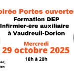 - Soirée Portes ouvertes à Vaudreuil-DorionDécouvrez la satisfaction de faire une différence chaque jour avec notre formation « SANTÉ, ASSISTANCE ET SOINS INFIRMIERS à Vaudreuil-Dorion. Nous serons présents pour vous renseigner et répondre à vos questions concernant le programme de formation des infirmiers et infirmières auxiliaires, ainsi que pour toutes nos formations dans le domaine de la santé.Des enseignants, des élèves… Lire la suite : Soirée Portes ouvertes à Vaudreuil-Dorion